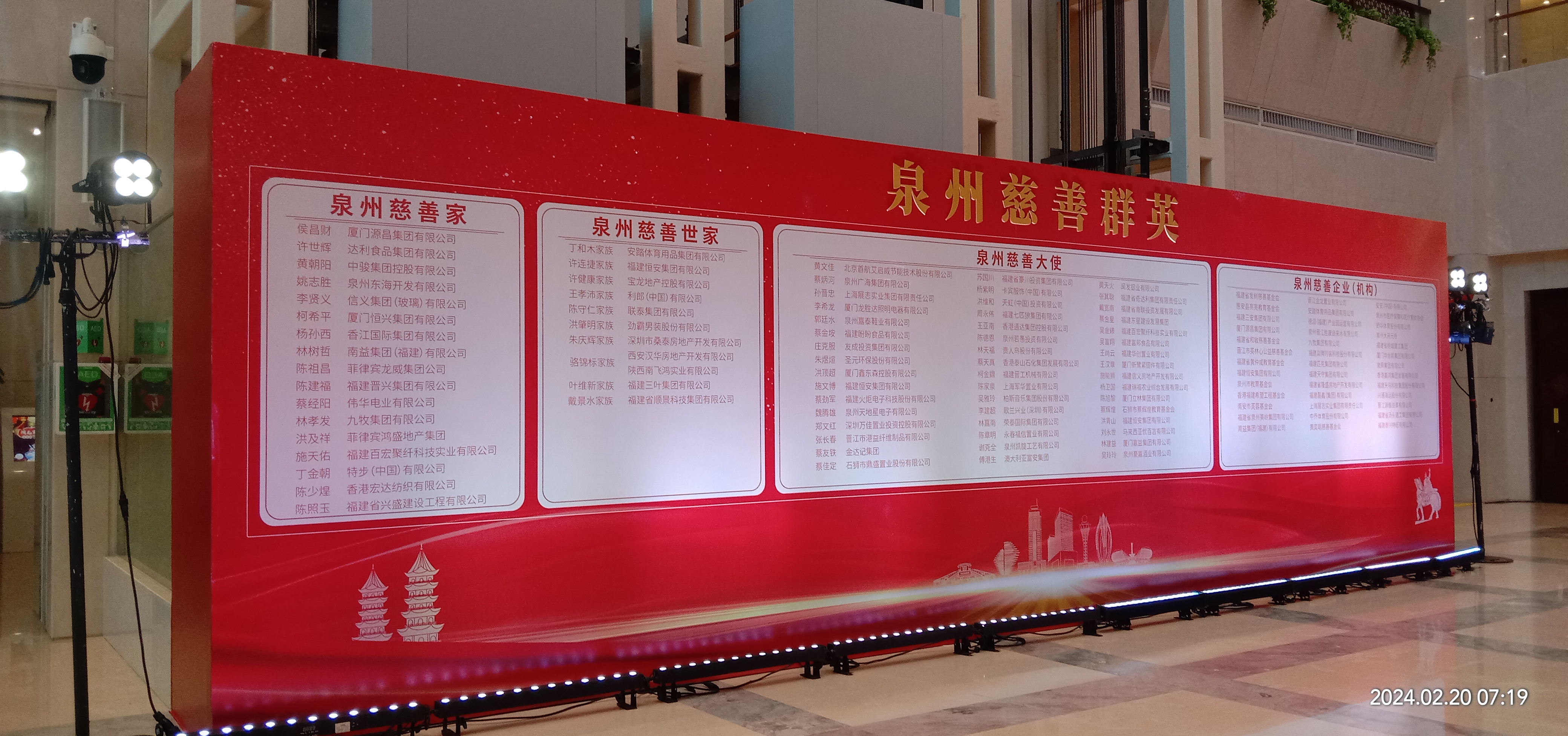 為大力弘揚(yáng)中華民族守望相助、樂善好施的傳統(tǒng)美德,宣傳、集中展示泉州市公益慈善事業(yè)惠民生、暖民心的積極貢獻(xiàn),厚植泉州公益慈善的社會(huì)基礎(chǔ),營(yíng)造“泉民參與慈善 共創(chuàng)美好生活”的良好社會(huì)氛圍,2024年2月20日,泉州市召開慈善大會(huì),侯昌財(cái)、許世輝等17位被授予“泉州慈善家”稱號(hào);聯(lián)泰集團(tuán)陳守仁家族、安踏集團(tuán)丁和木家族、恒安集團(tuán)許連捷家族等等10個(gè)被授予“泉州慈善世家”稱號(hào);火炬電子蔡勁軍、展志實(shí)業(yè)孫晉忠、盼盼食品蔡金垵等48位被授予“泉州慈善大使”稱號(hào);泉州大開元寺、香港嘉鴻集團(tuán)發(fā)展有限公司等39家企業(yè)被授予“泉州慈善企業(yè)(機(jī)構(gòu))”稱號(hào)。